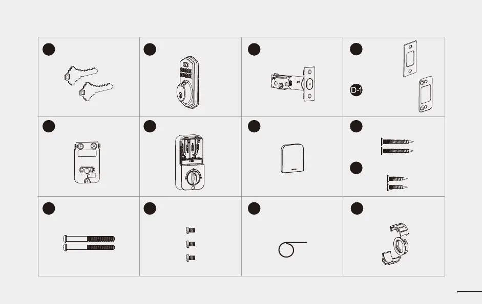 Mounting Plate x1 Interior Assembly x1 Battery Cover x1 Strike Screws x2