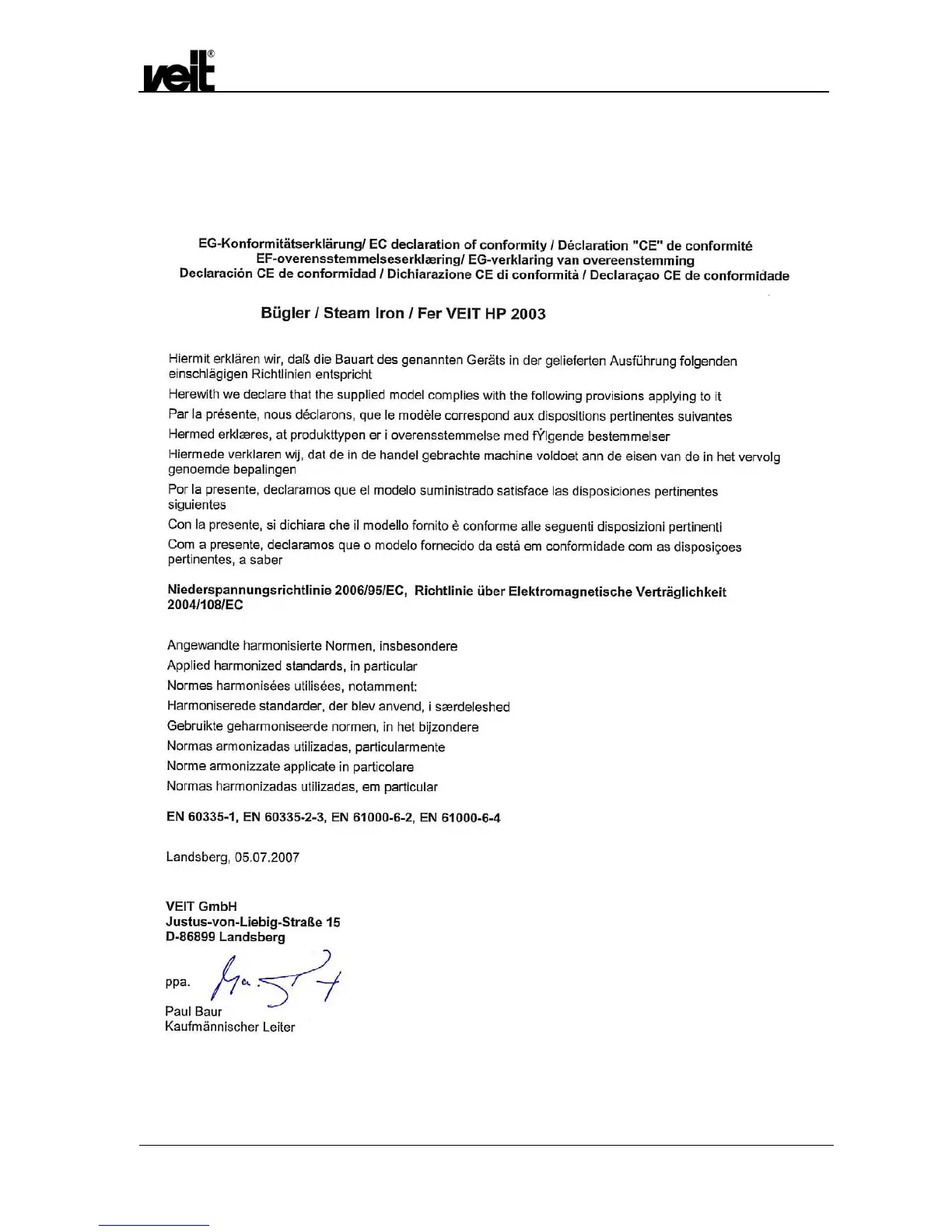 4 EG-Konformitätserklärung / EC Declaration of Conformity