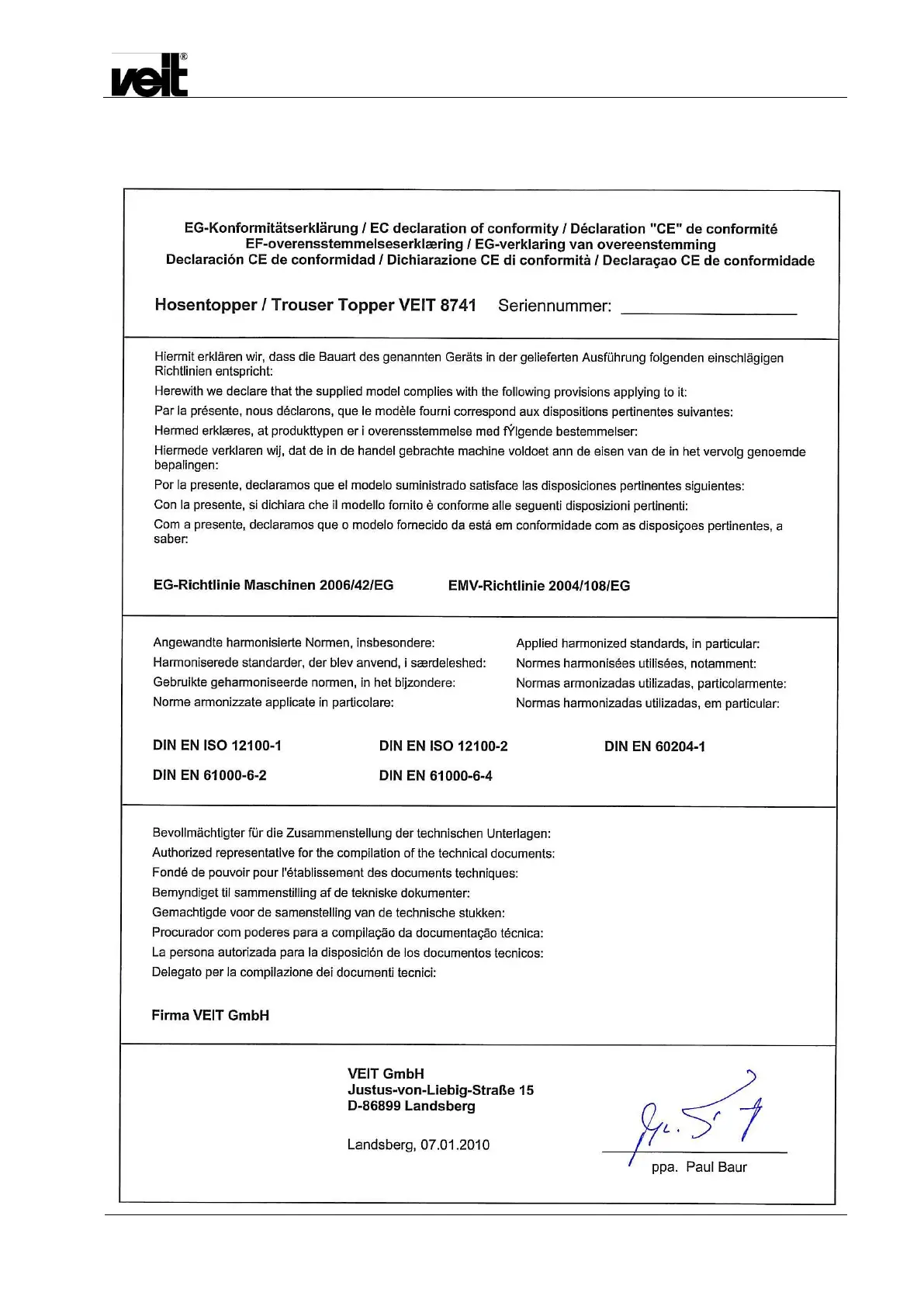 10 EG-Konformitätserklärung / EC Declaration of Conformity