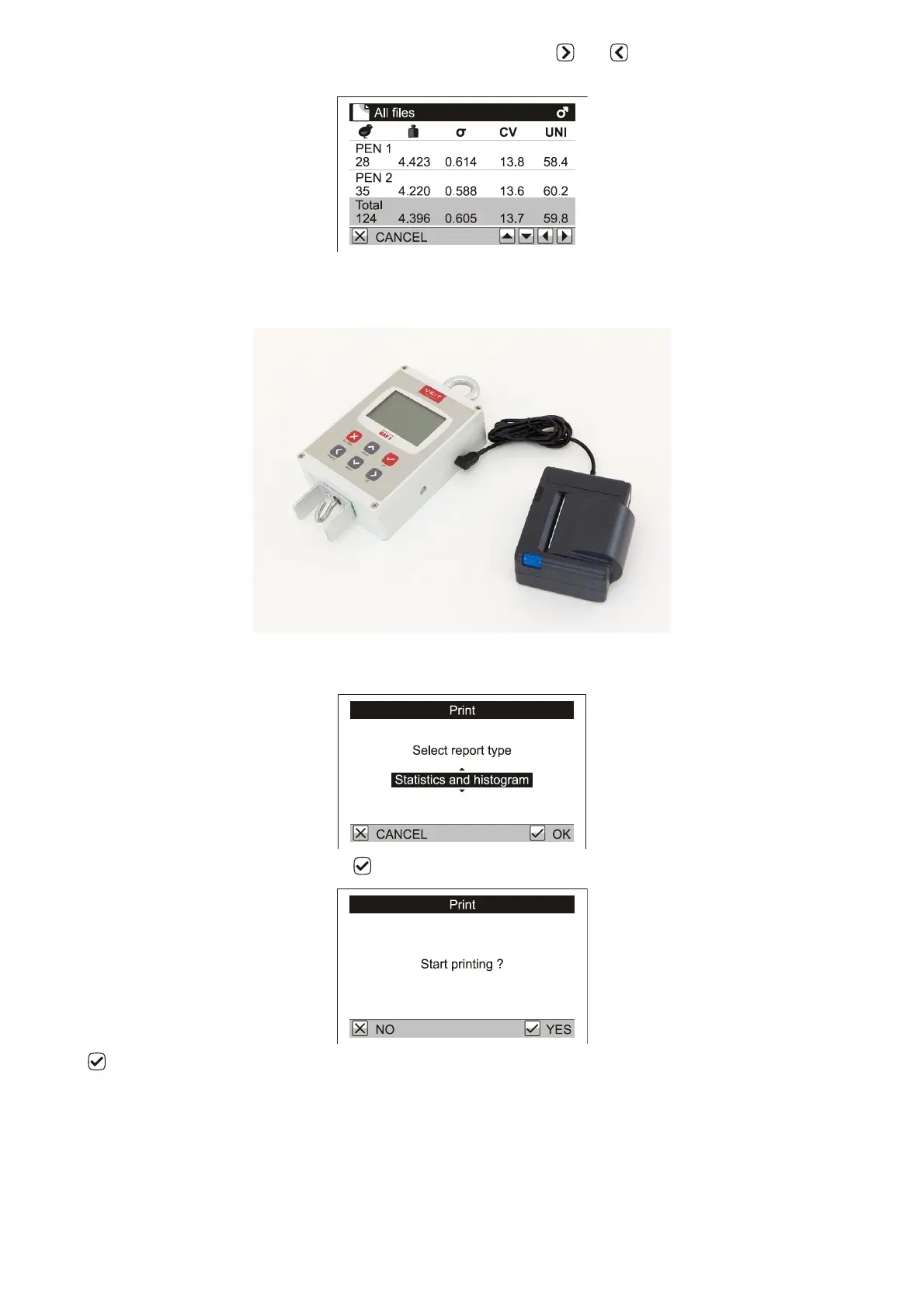 If the mode of weighing with the sex selection is activated, use keys and to display the statistics for cocks
