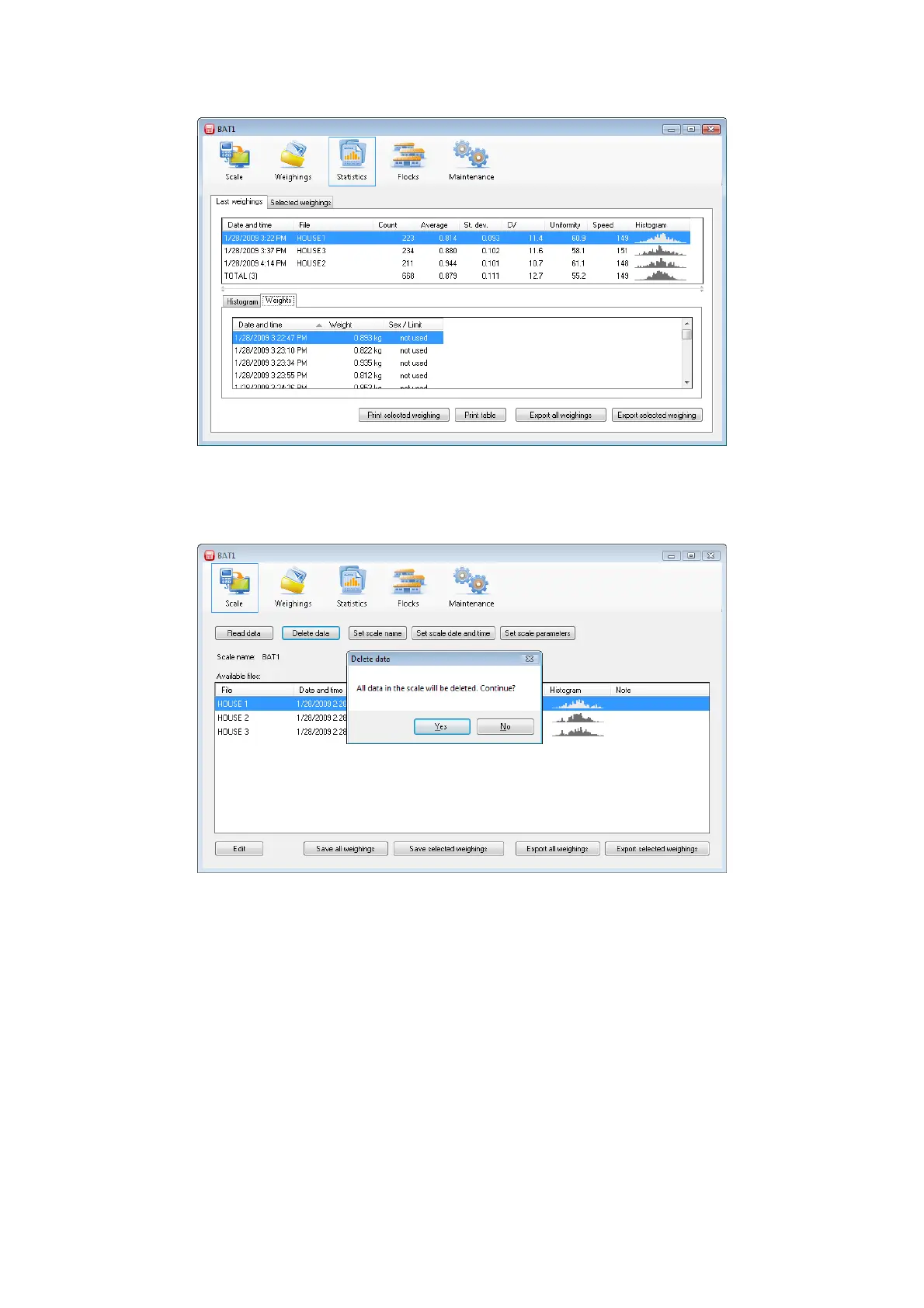 Click Yes. The data is deleted from the scale and can be disconnected from the PC.