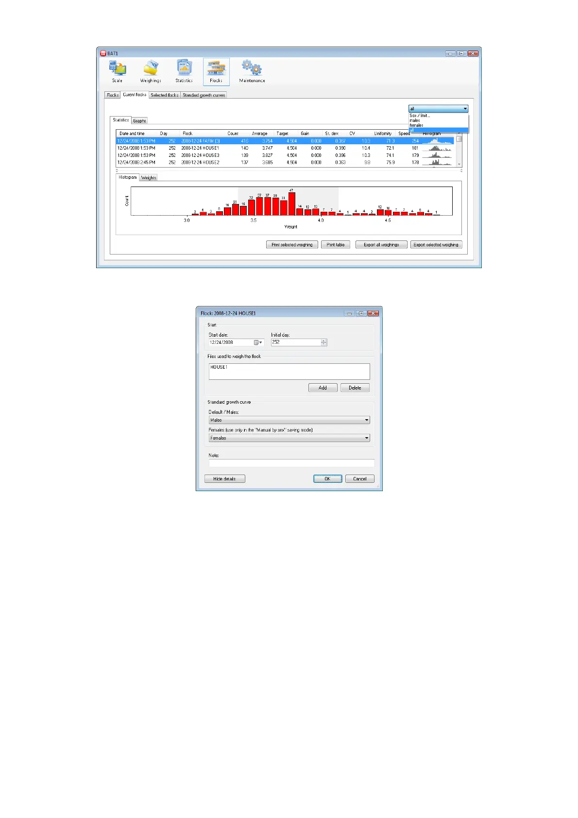 In the flocks, it is possible to enter standard growth curves separately for males and females. Select the Flocks