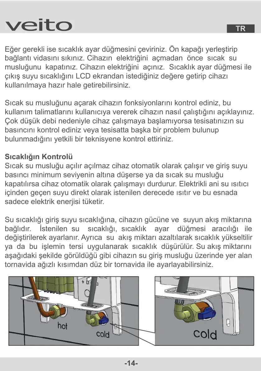 Sıcak su musluğunu açarak cihazın fonksiyonlarını kontrol ediniz, bu