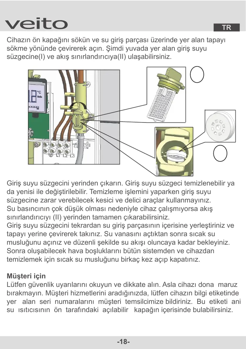 da yenisi ile değiştirilebilir. Temizleme işlemini yaparken giriş suyu