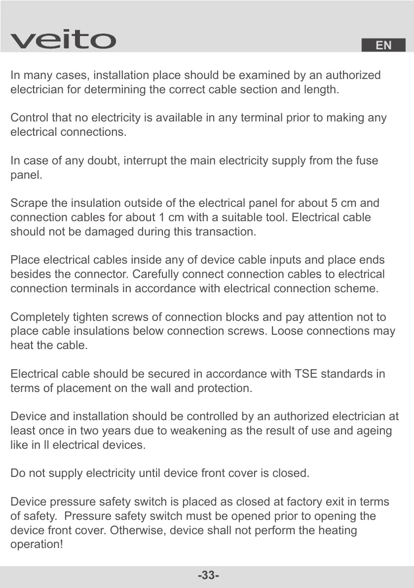 connection cables for about 1 cm with a suitable tool. Electrical cable