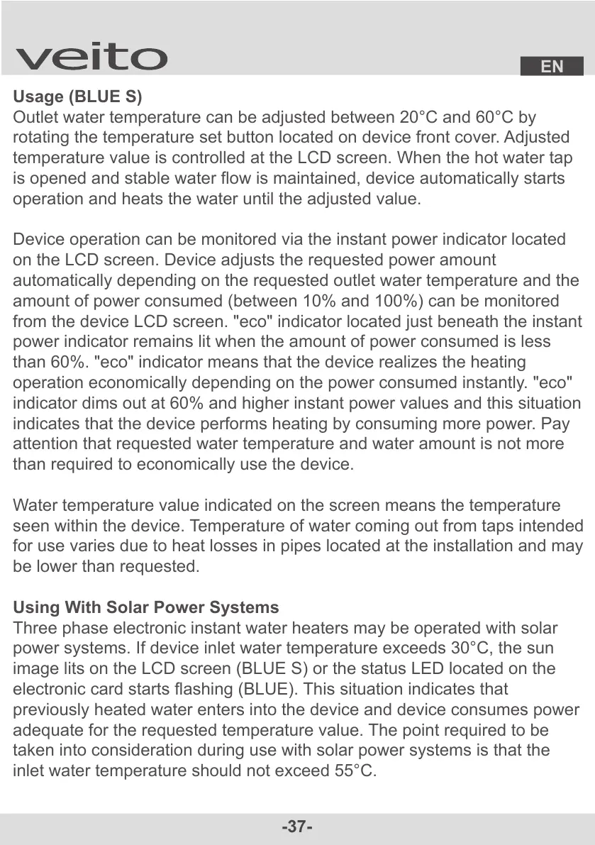 power systems. If device inlet water temperature exceeds 30°C, the sun