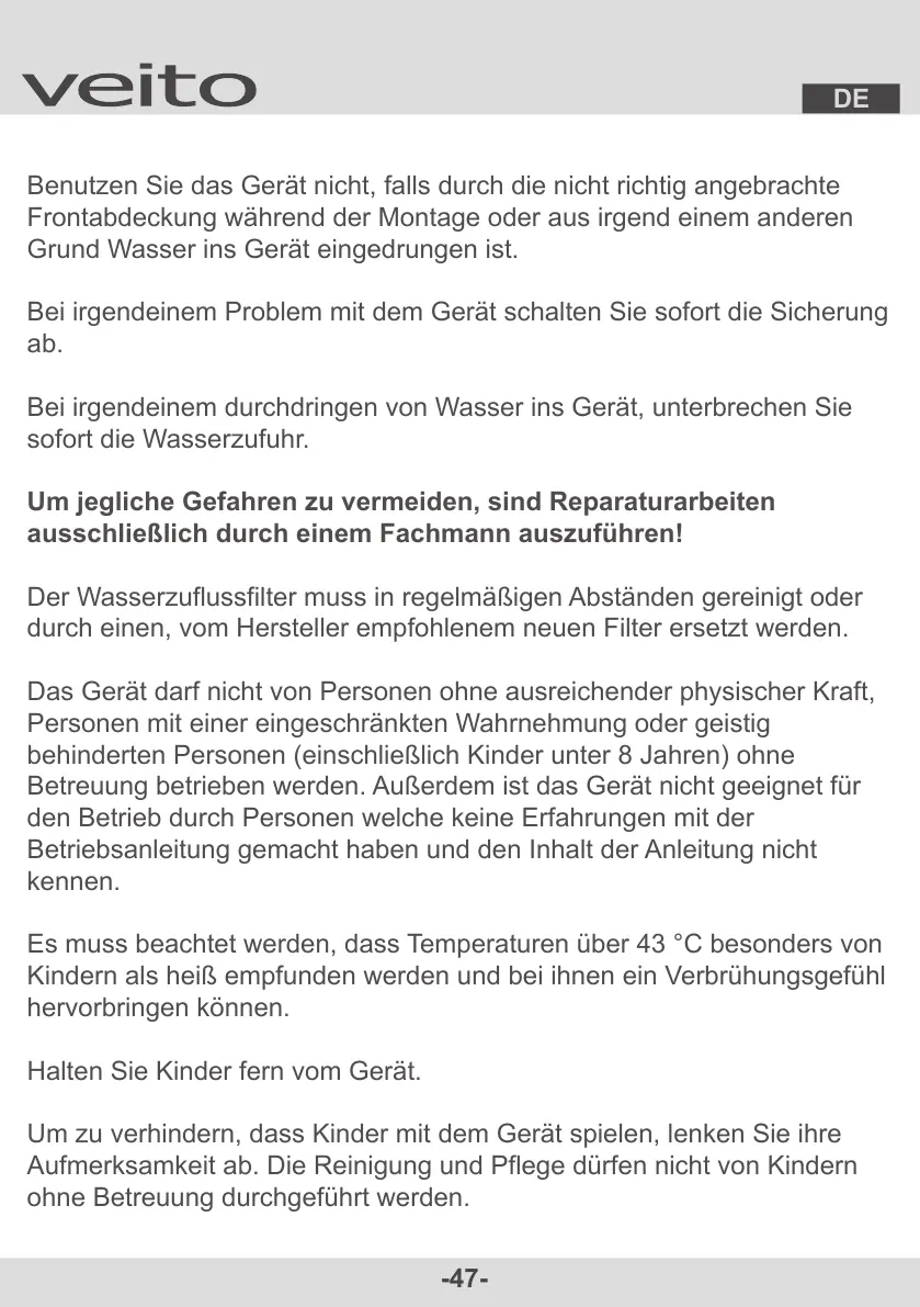 Aufmerksamkeit ab. Die Reinigung und Pflege dürfen nicht von Kindern