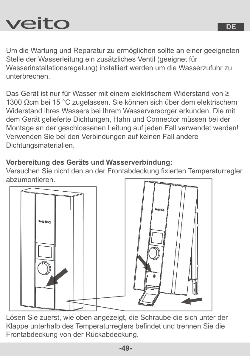 Wasserinstallationsregelung) installiert werden um die Wasserzufuhr zu