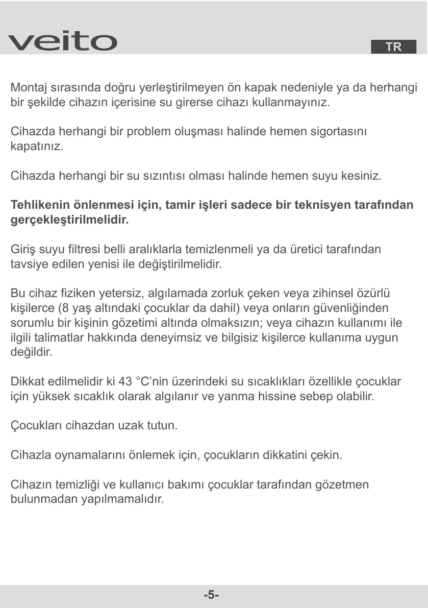 Dikkat edilmelidir ki 43 °C’nin üzerindeki su sıcaklıkları özellikle çocuklar
