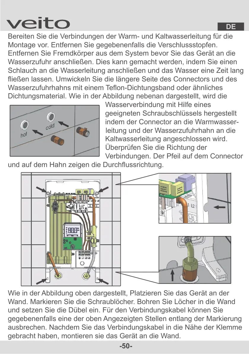 Bereiten Sie die Verbindungen der Warm- und Kaltwasserleitung für die