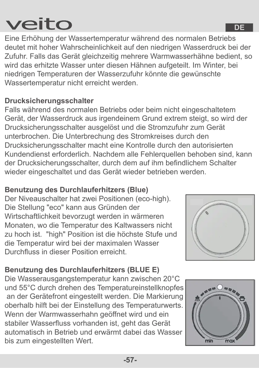 Zufuhr. Falls das Gerät gleichzeitig mehrere Warmwasserhähne bedient, so