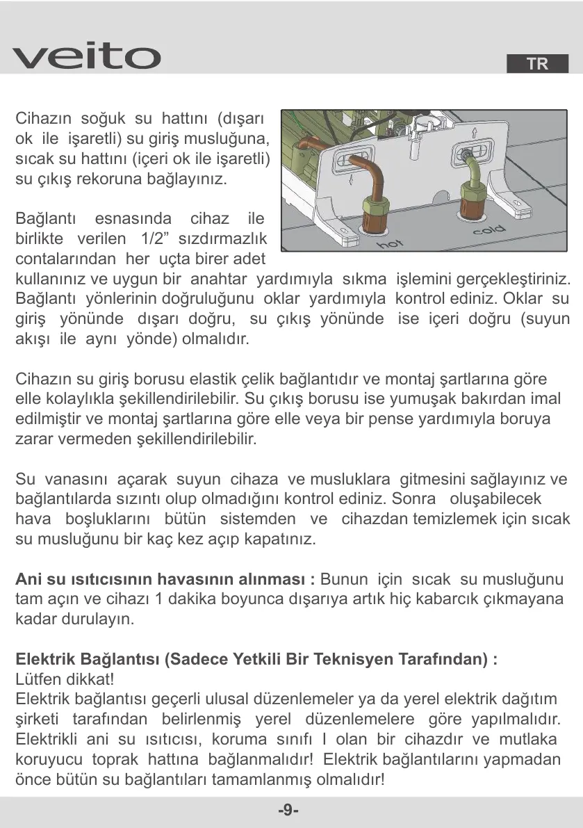Elektrikli ani su ısıtıcısı, koruma sınıfı I olan bir cihazdır ve mutlaka