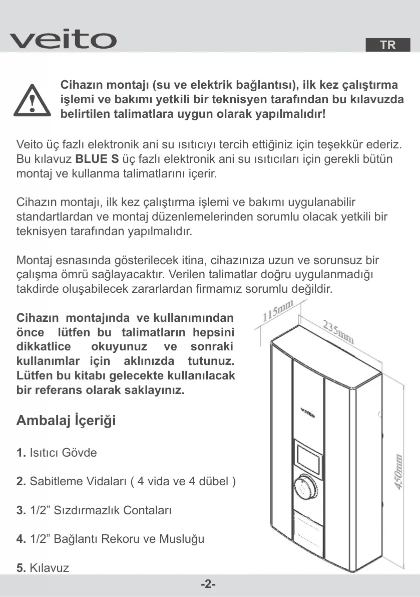 Veito üç fazlı elektronik ani su ısıtıcıyı tercih ettiğiniz için teşekkür ederiz.