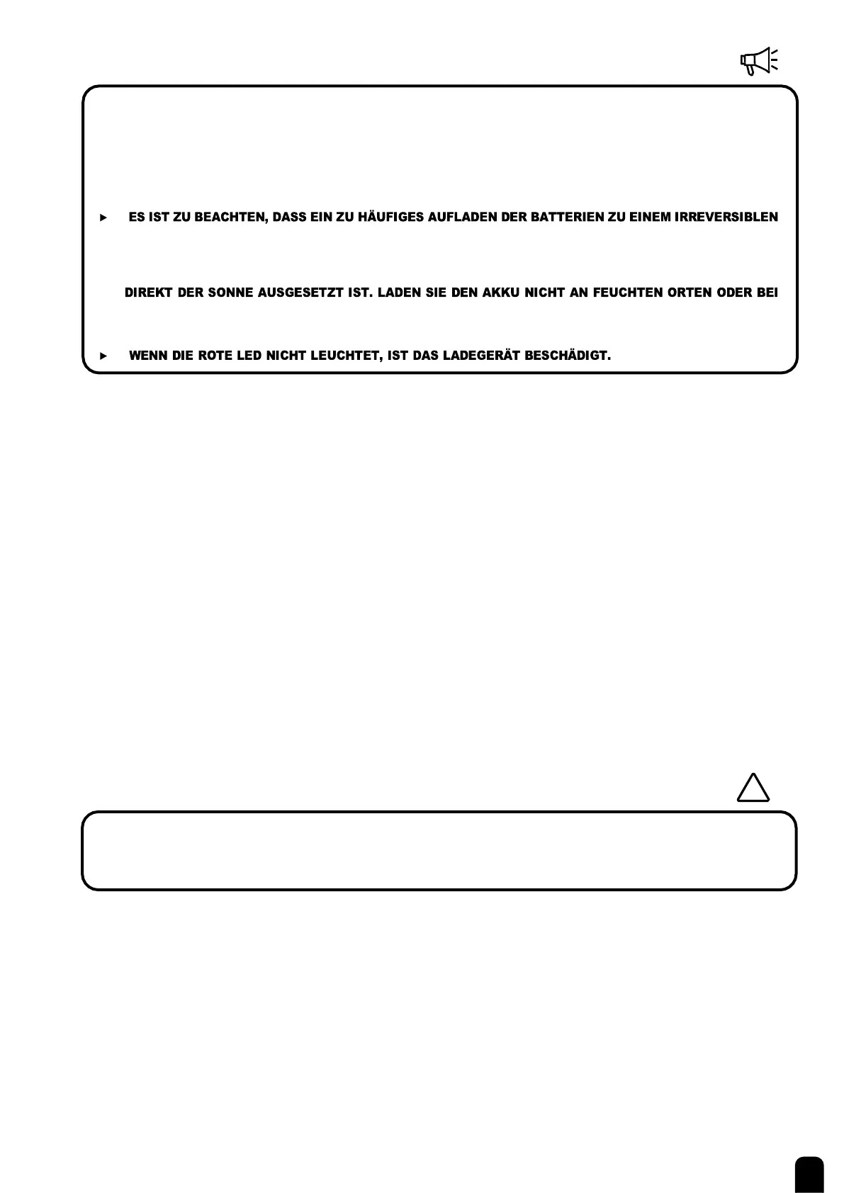 ▶ DER HERSTELLER HAFTET NICHT FÜR SCHÄDEN, DIE DURCH UNSACHGEMÄSSES AUFLADUNG
