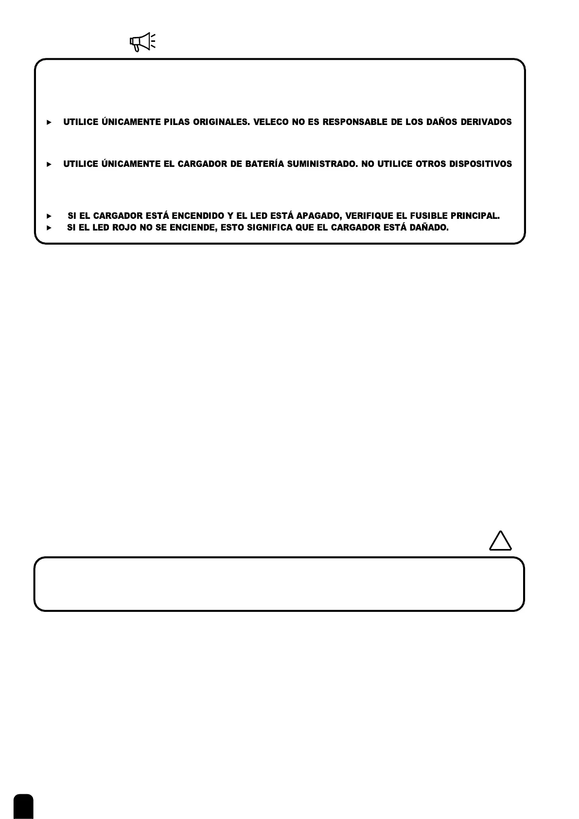 ▶ EL FABRICANTE NO ES RESPONSABLE DE LOS DAÑOS CAUSADOS POR LA CARGA INCORRECTA.