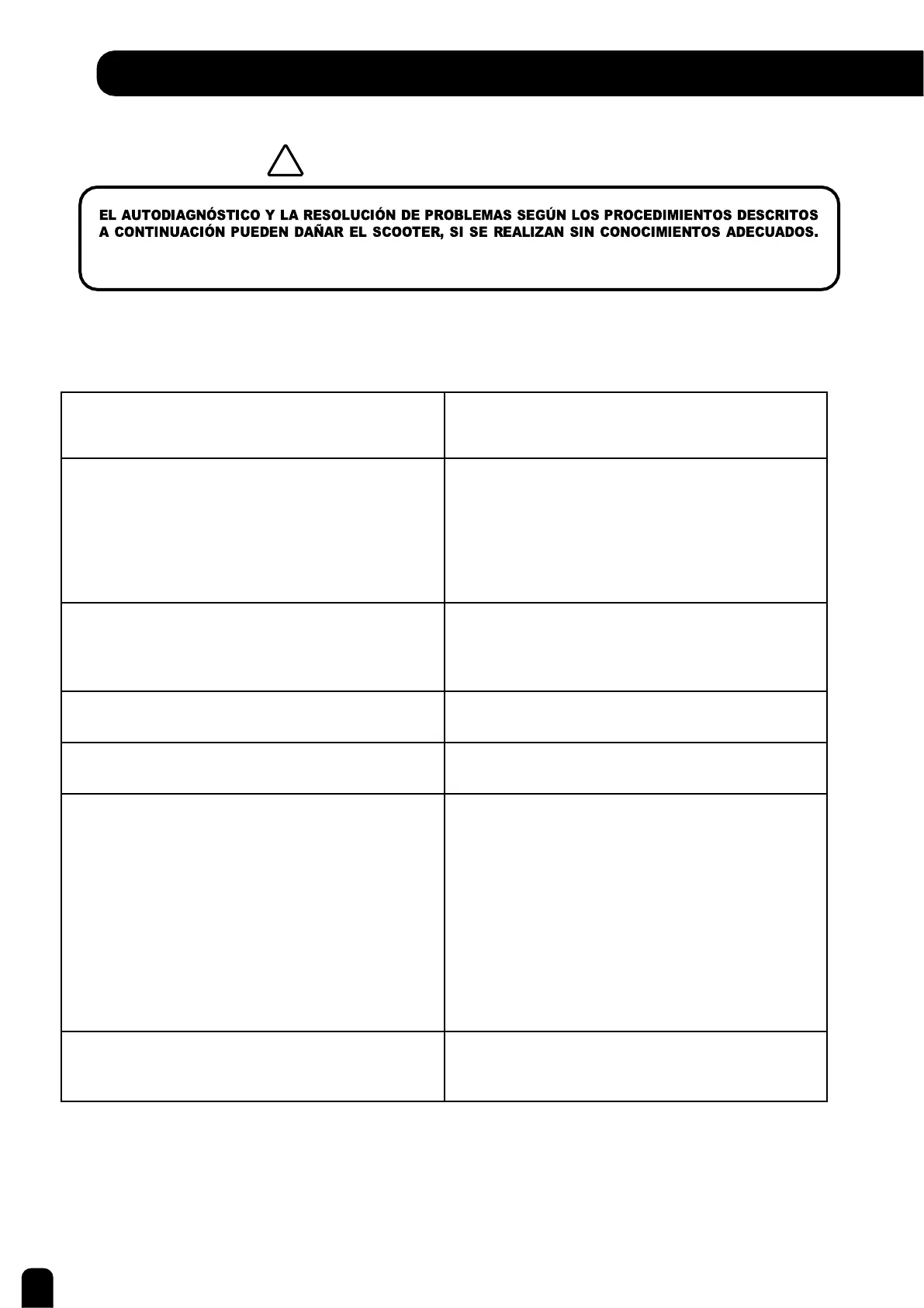ACONSEJA AL USUARIO QUE SE PONGA EN CONTACTO CON EL DISTRIBUIDOR DEL SCOOTER.
