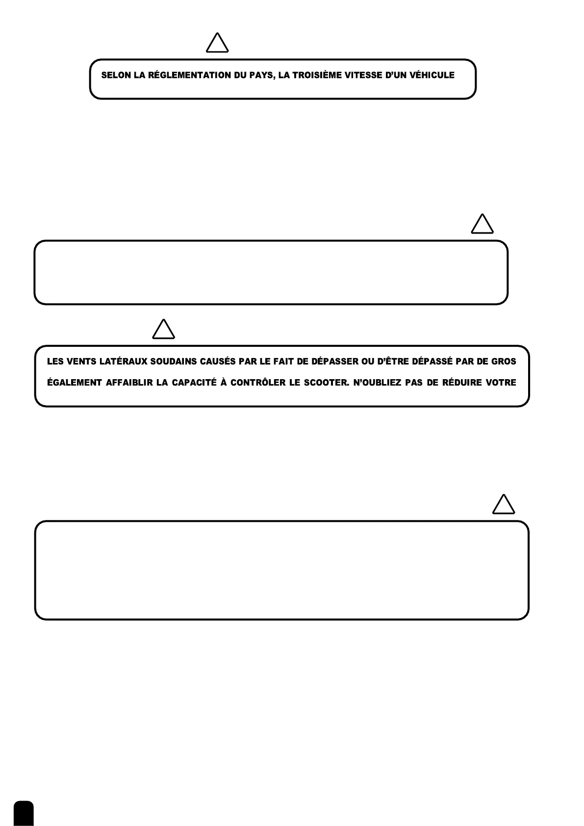 AVANT DE TOURNER, RÉDUISEZ TOUJOURS LA VITESSE DU SCOOTER AVANT LE VIRAGE.
