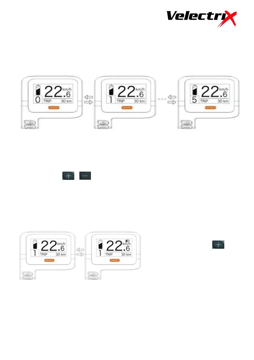 minus buttons to change between the levels. Pedal assist does