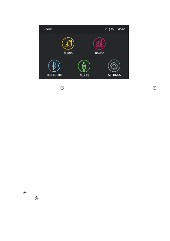 Power on/off Press the ' ' button to turn the unit on. Press and hold ' ' -