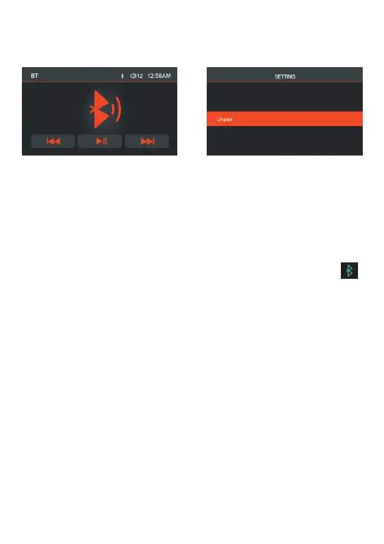 After paired, select BT mode from MENU, BT music interface will be displayed