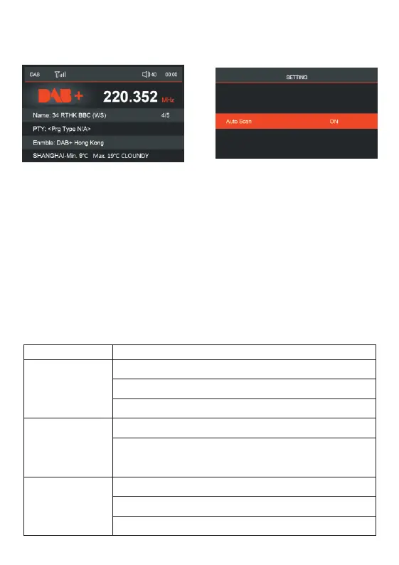 Long press 'MENU' button to activate DAB+ settings. (AUTOSCAN)