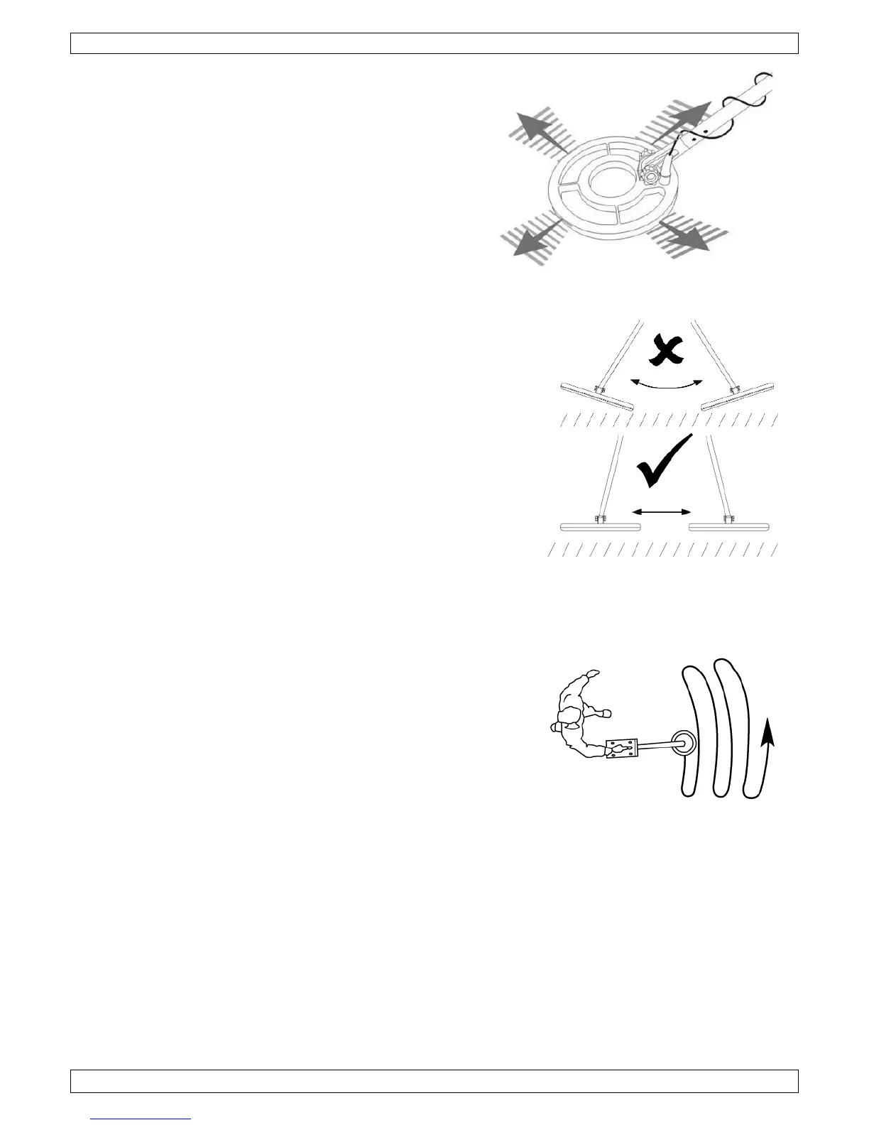 Beweeg de zoekspoel over het voorwerp met kruisende slingerbewegingen vanuit verschillende hoeken,
