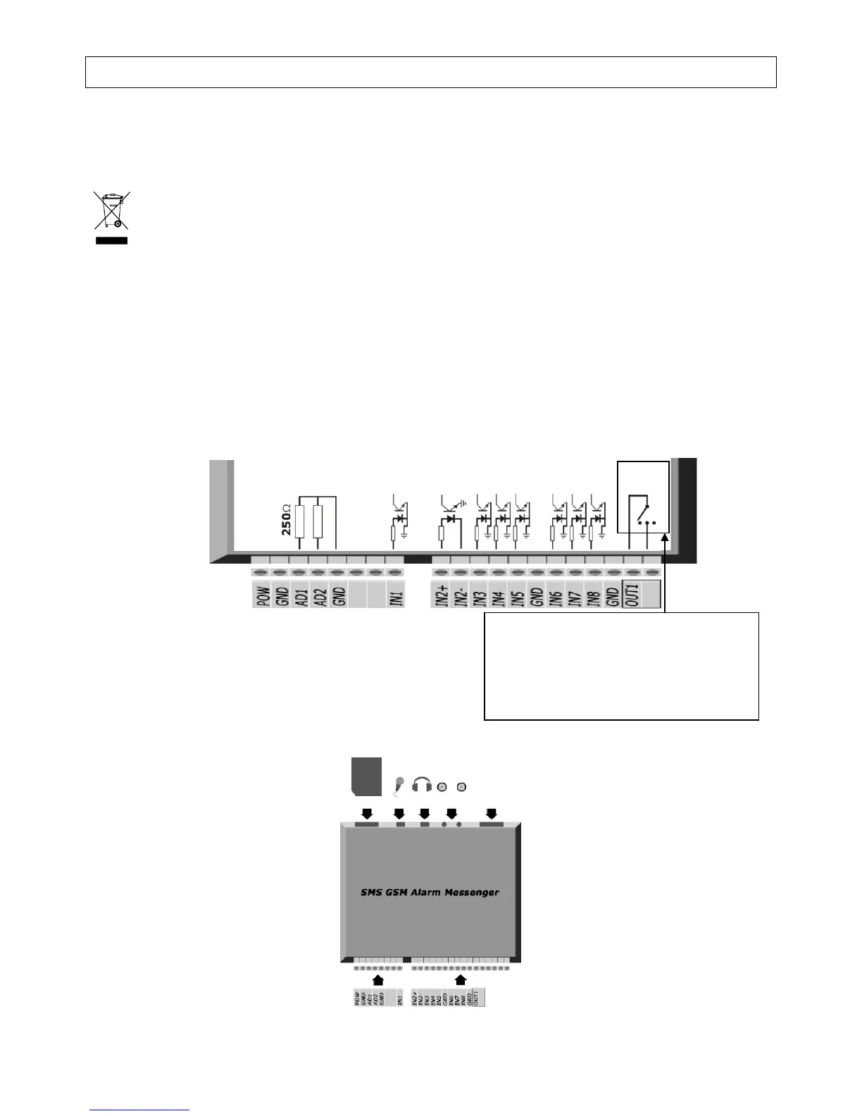 IN1, IN3, IN4, IN5, IN6, IN7, IN8, GND : entrée d’alarme 12VCC,
