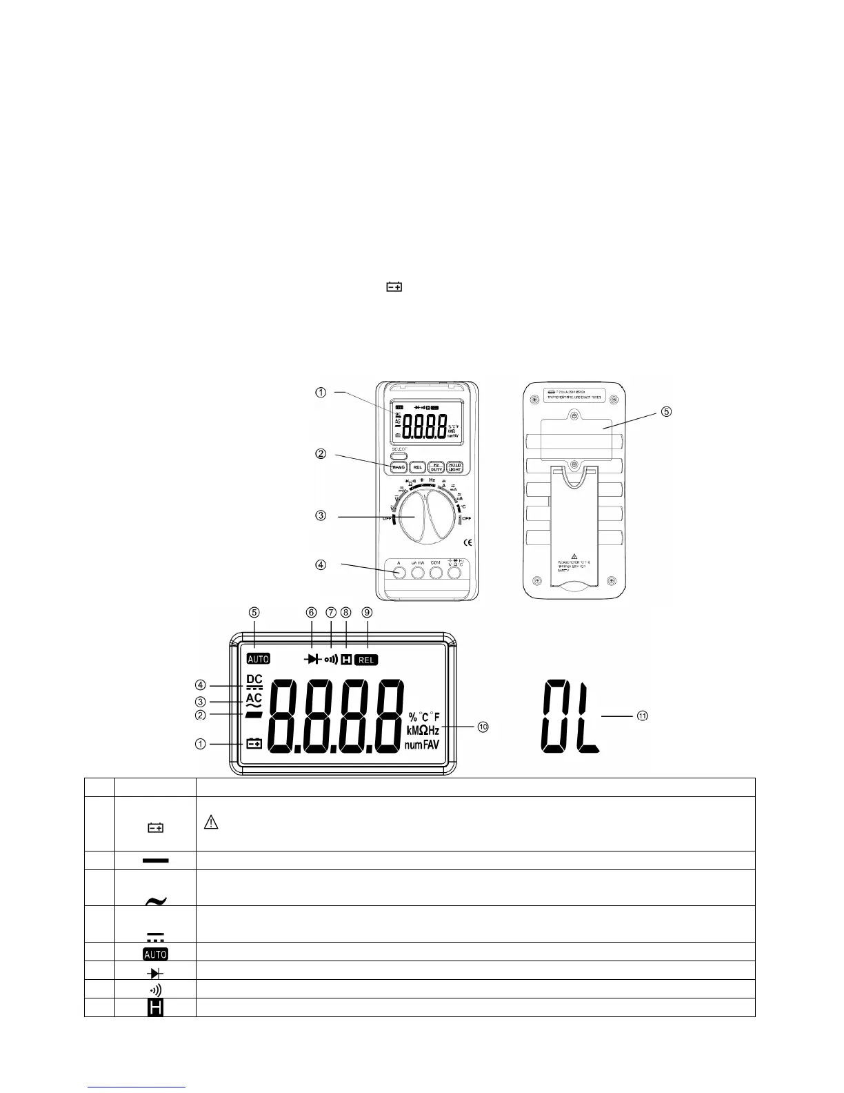 • L’icône REL s’affiche en mode REL. Procéder avec précaution à cause de la présence de tension dangereuse.