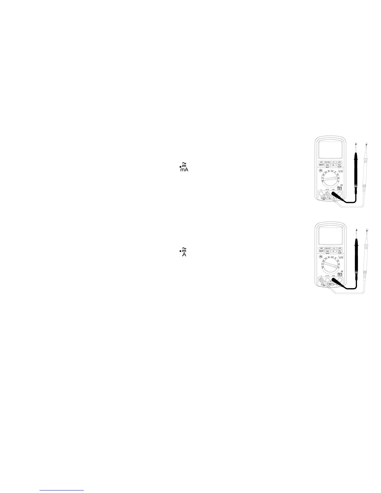 o Select the DC mA, AC mA or DC mA + AC mA measurement mode by pressing SELECT.