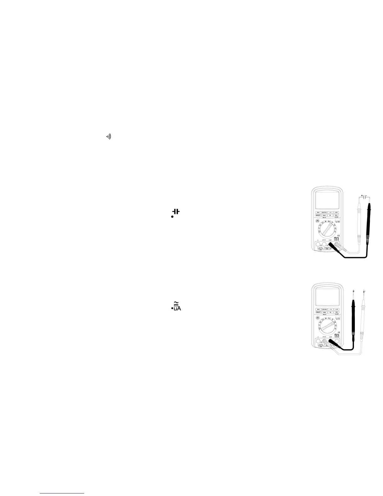 o Włóż czarny I czerwony przewód testowy do złącza mA/µA i złącza COM .