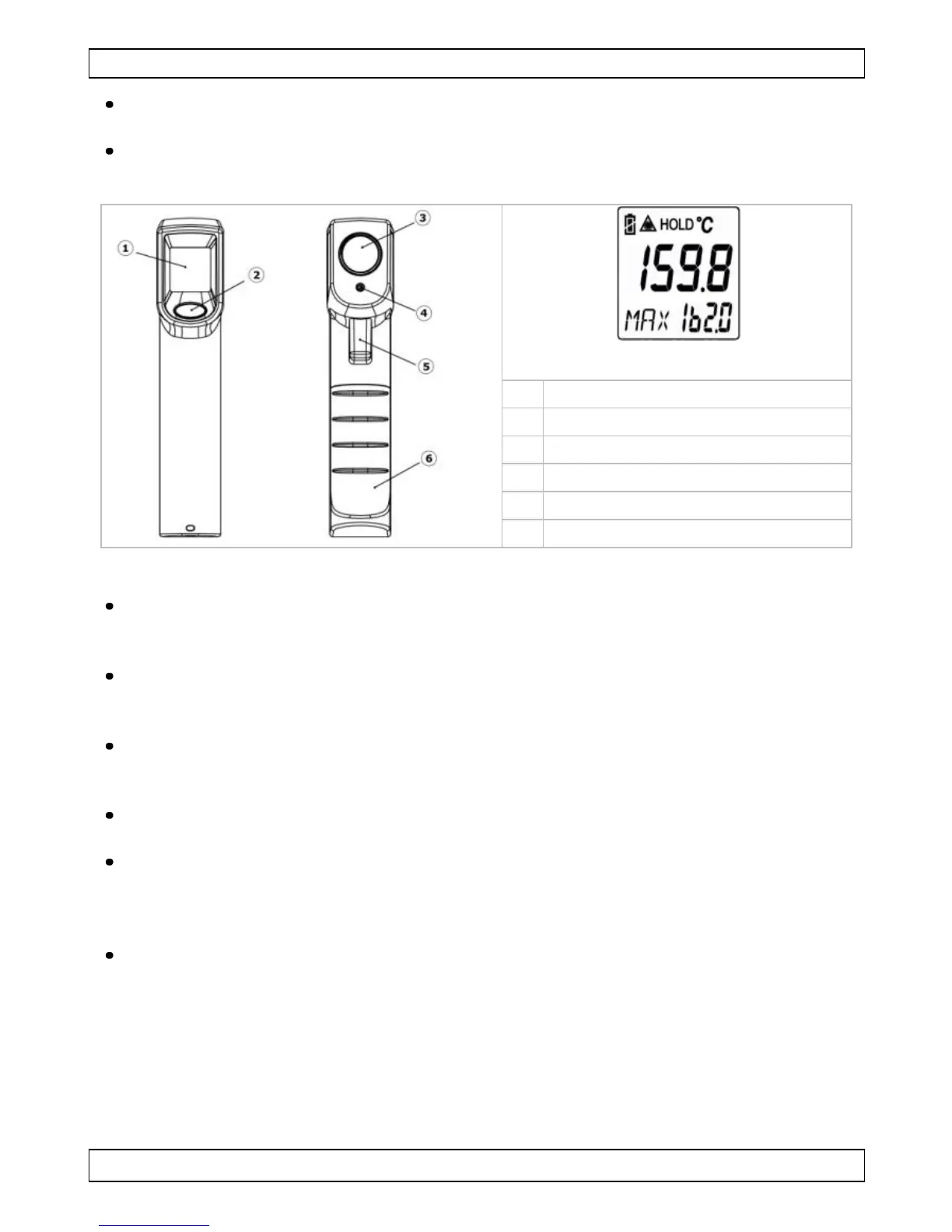 Richt de infraroodlens [3] op het te meten punt en druk op de meetknop