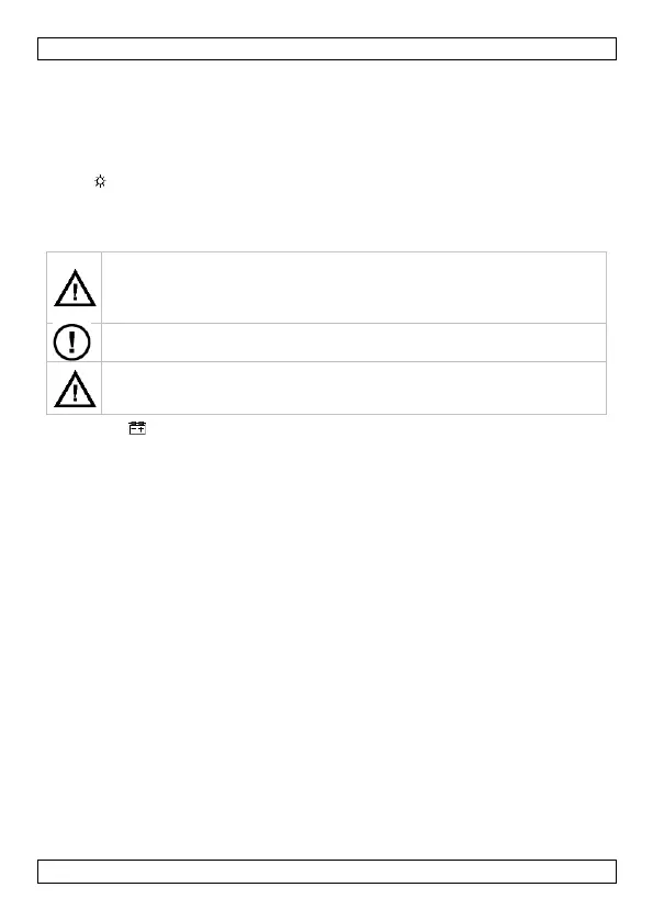 Hold “ ” pressed for 2 seconds to switch the backlight on or off. The