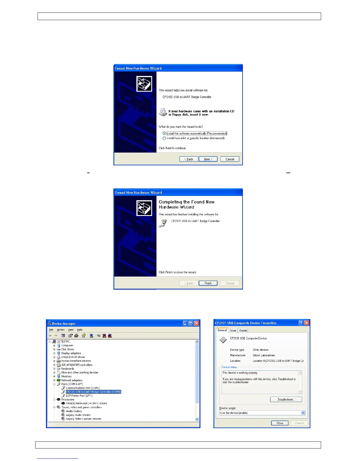 • Ein Fenster mit der Erwähnung ‘Completing the Found New Hardware Wizard’ erscheint. Klicken