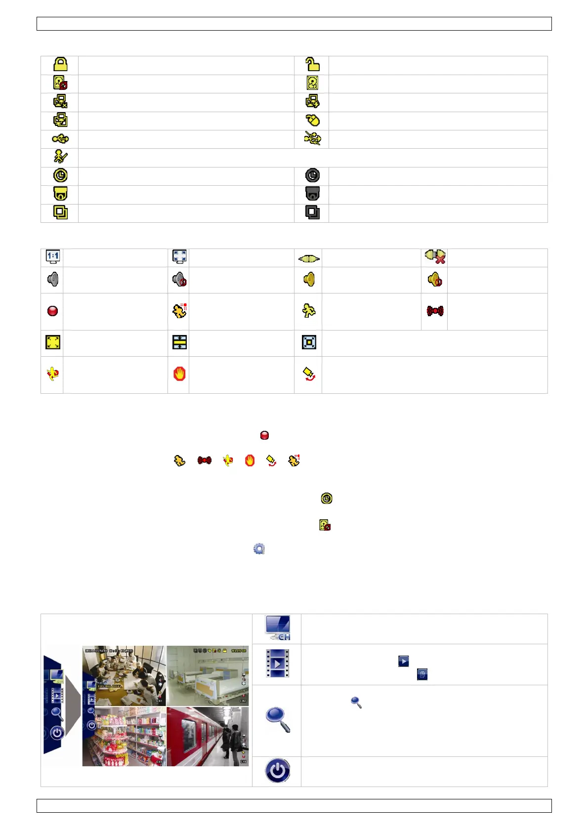 Os ícones de ocorrência, / / / / / , aparecem no ecrã quando surgem as respectivas