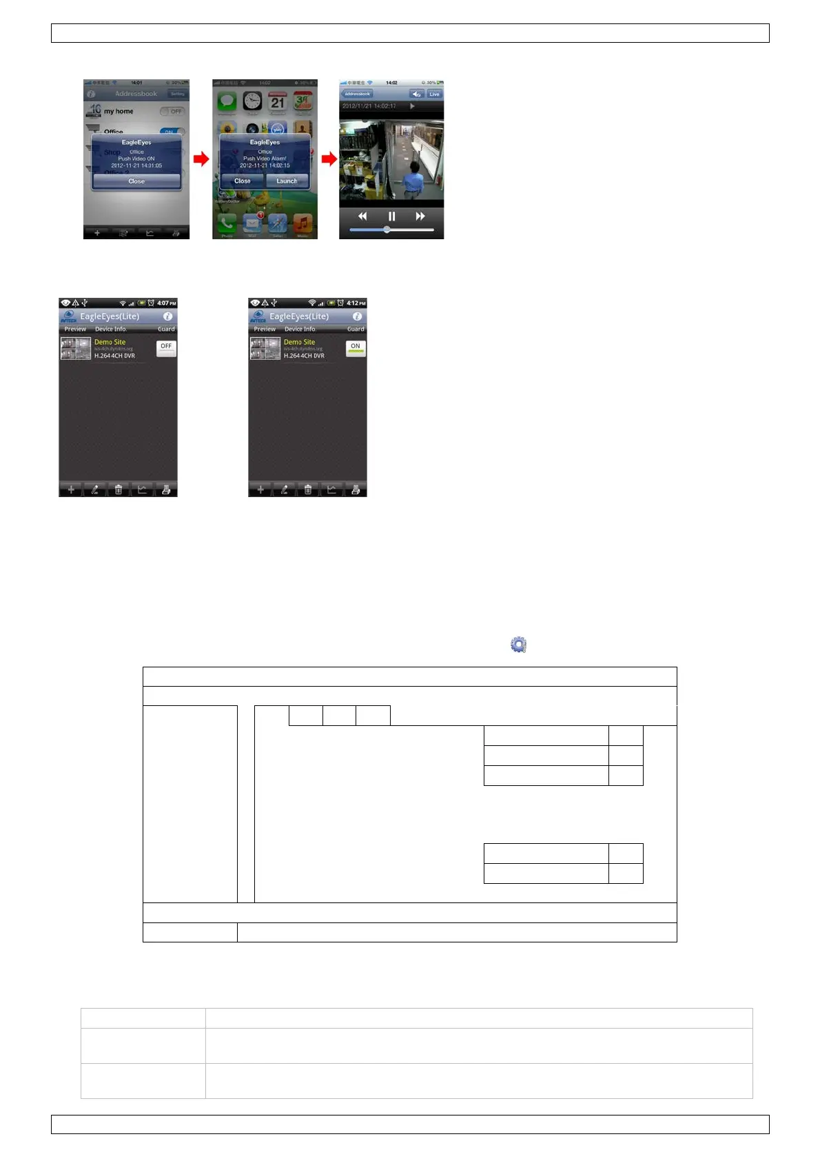 disparo do alarme. Seleccione para reproduzir o vídeo gravada de imediato.