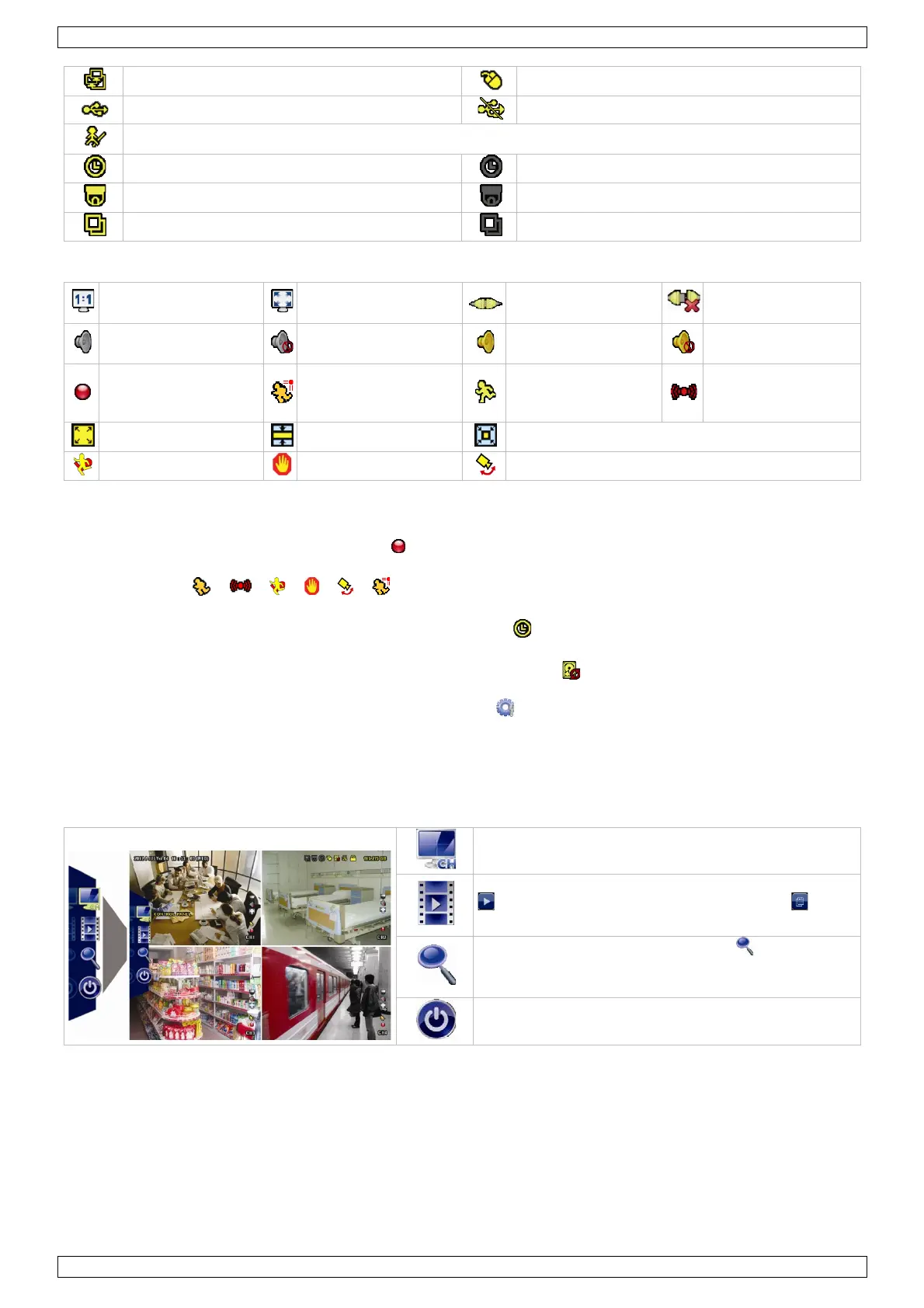 De symbolen / / / / / worden op het scherm weergegeven (afhankelijk van het event).