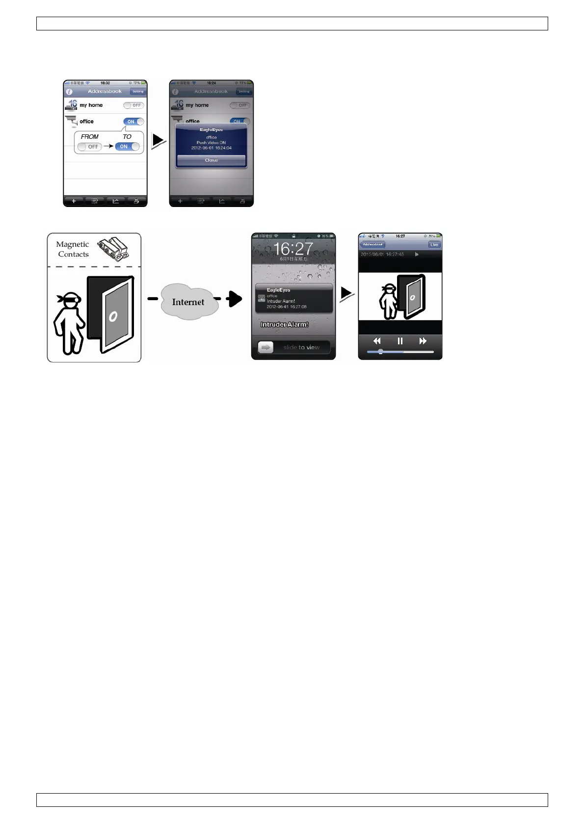 Deze DVR ondersteunt de meldingfunctie via uw iPhone, iPad of Android-smartphone met de EagleEyes-