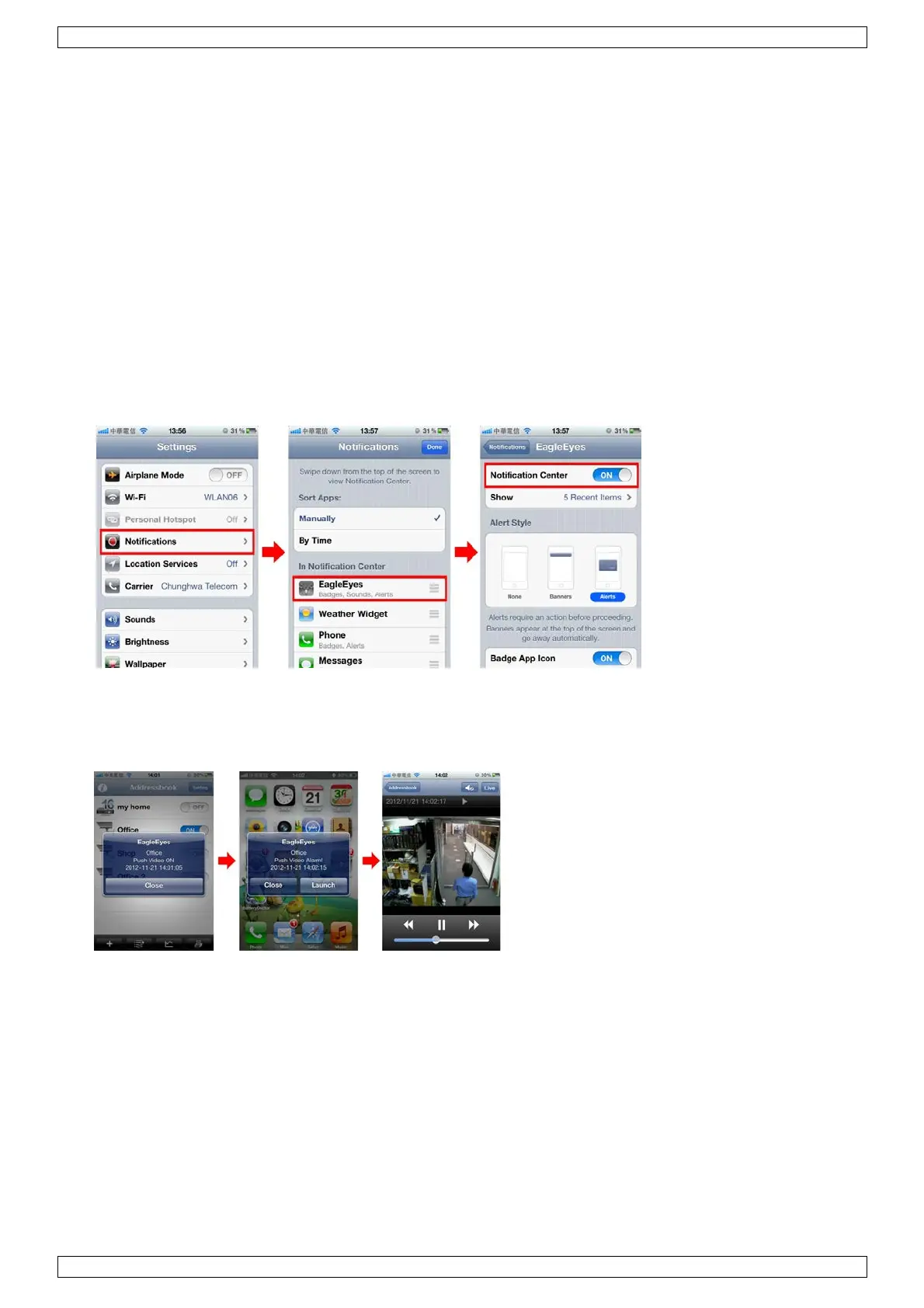 3. Abra EagleEyes y ponga el botón Push Video en la posición ON. Recibirá un mensaje para confirmar que la