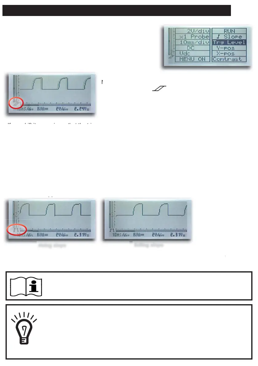 played. Press any arrow key to toggle between rising and falling slope. Take a look at the waveform