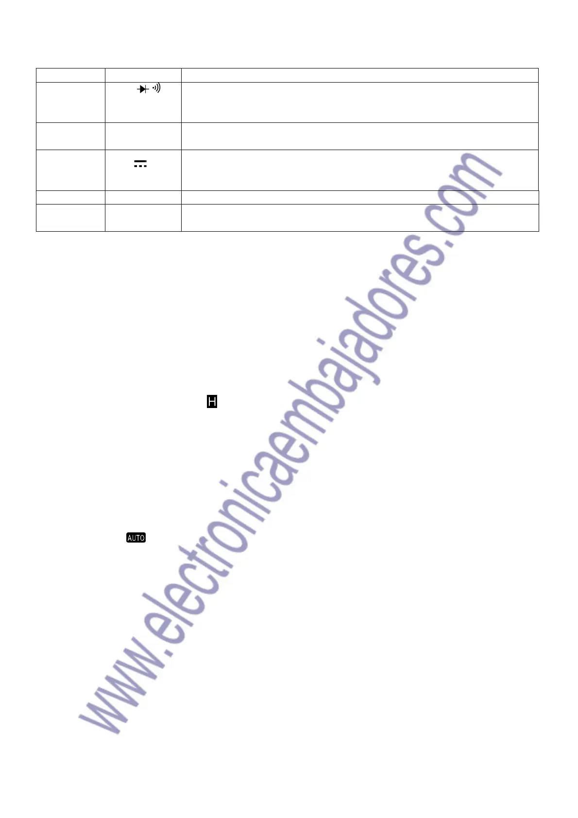 * The meter default to the autoranging mode in measurement functions that have mode than one range. The