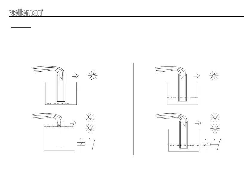 If the level then falls and only sensor S2 remains wet, LD2 and LD4 illuminate, fig 6.3