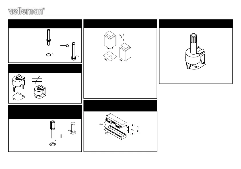 Velleman K4401 - K4401 Component Installation: Potentiometers, Switches, Connectors; K4401 PCB Pins and Trim Potentiometer Installation; K4401 Push Buttons and Potentiometer Axe