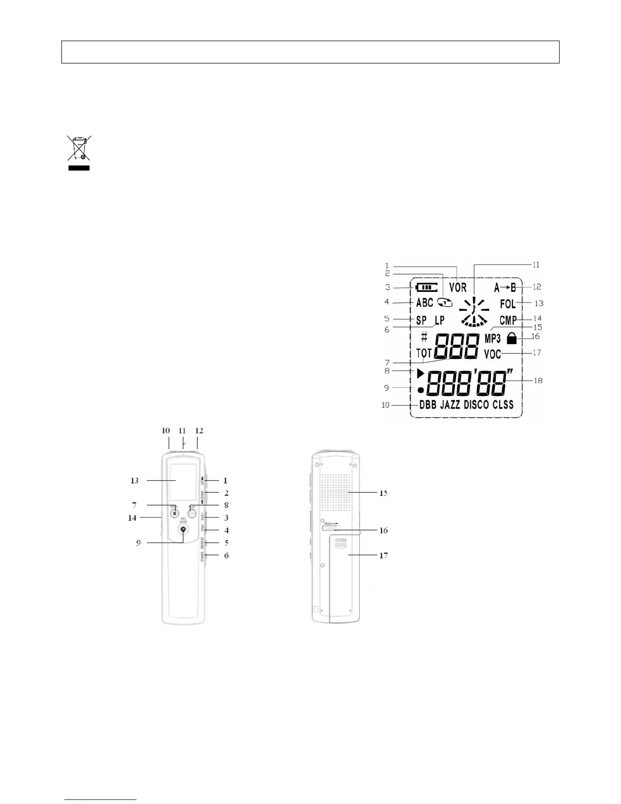 6. long-playing recording mode 15. MP3 mode