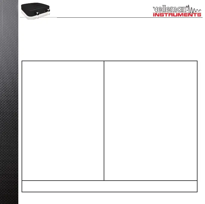 ESPECIFICACIONES BAJO RESERVA DE MODIFICACIONES - DLL disponible para desarrollos propios - www.velleman.eu