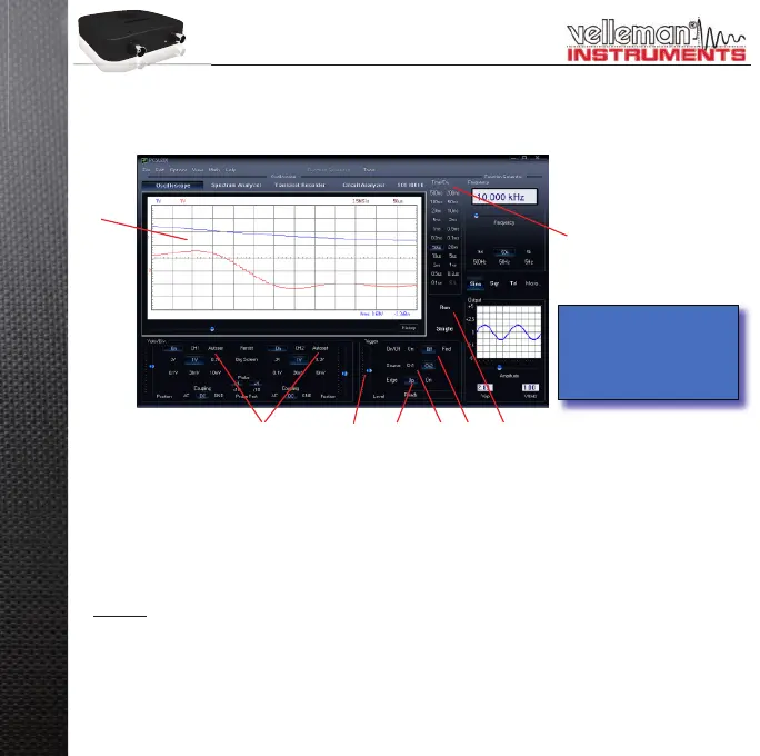 Haga click en el canal y volts/div, o haga click en "Autoset" (• 2).