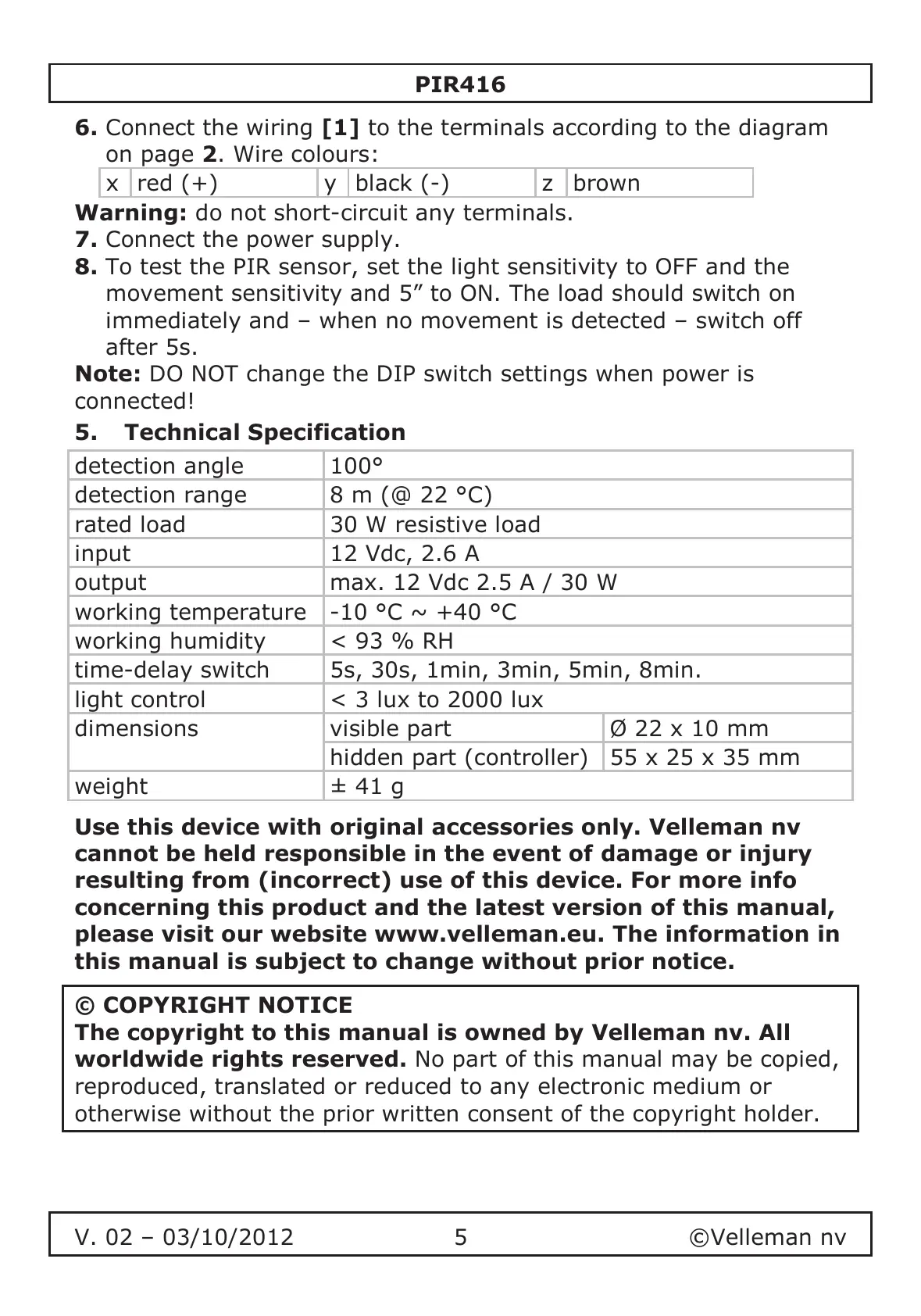 V. 02 – 03/10/2012 5 ©Velleman nv