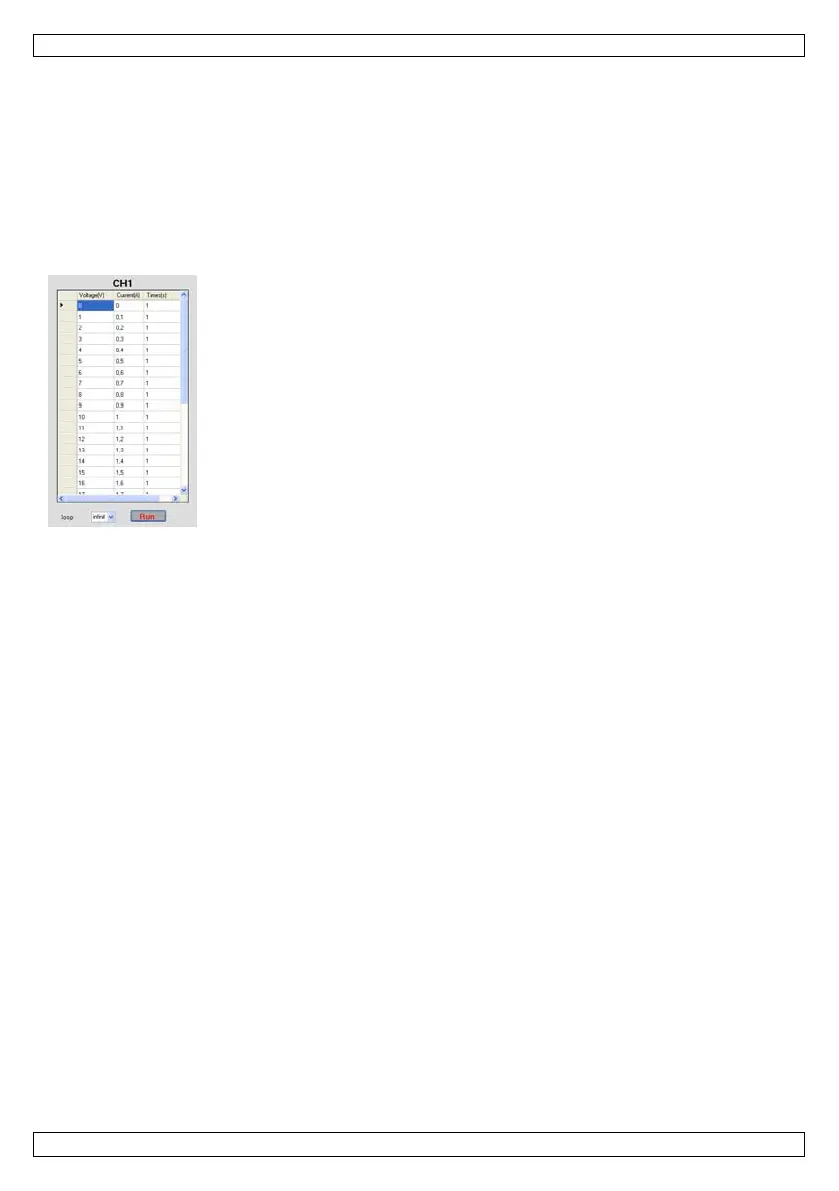 Le logiciel vous permet de définir une série de réglages de tension/courant pour la sortie, et de les faire