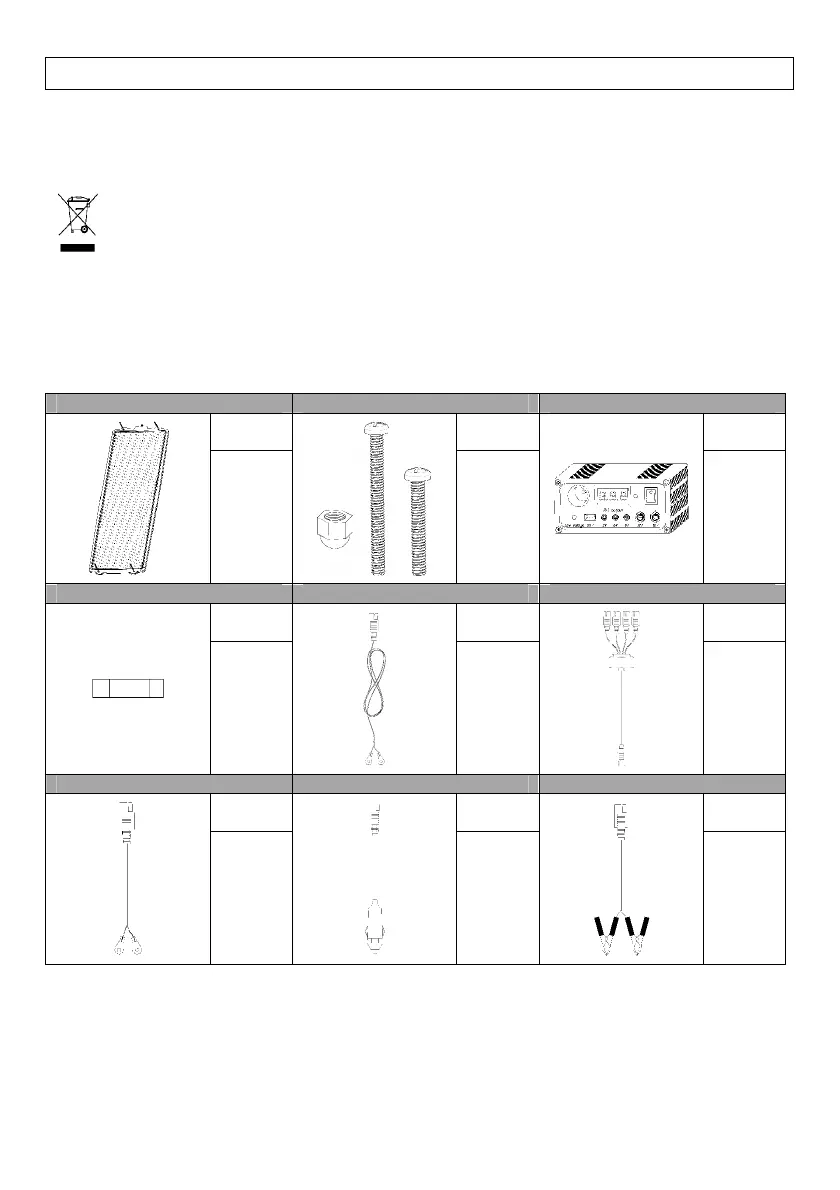 P1 – Paneel in amorfe siliconen P2 – Schroevenset (M5x45.M5x55.M5) P3 – Laadregelaar (5A)