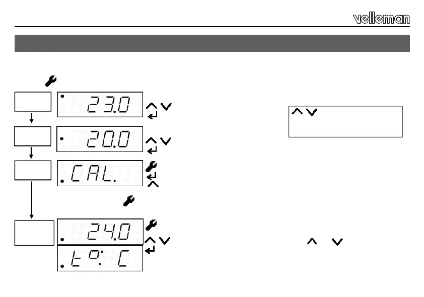 de MENU * -toets tot de melding “t° :” verschijnt.