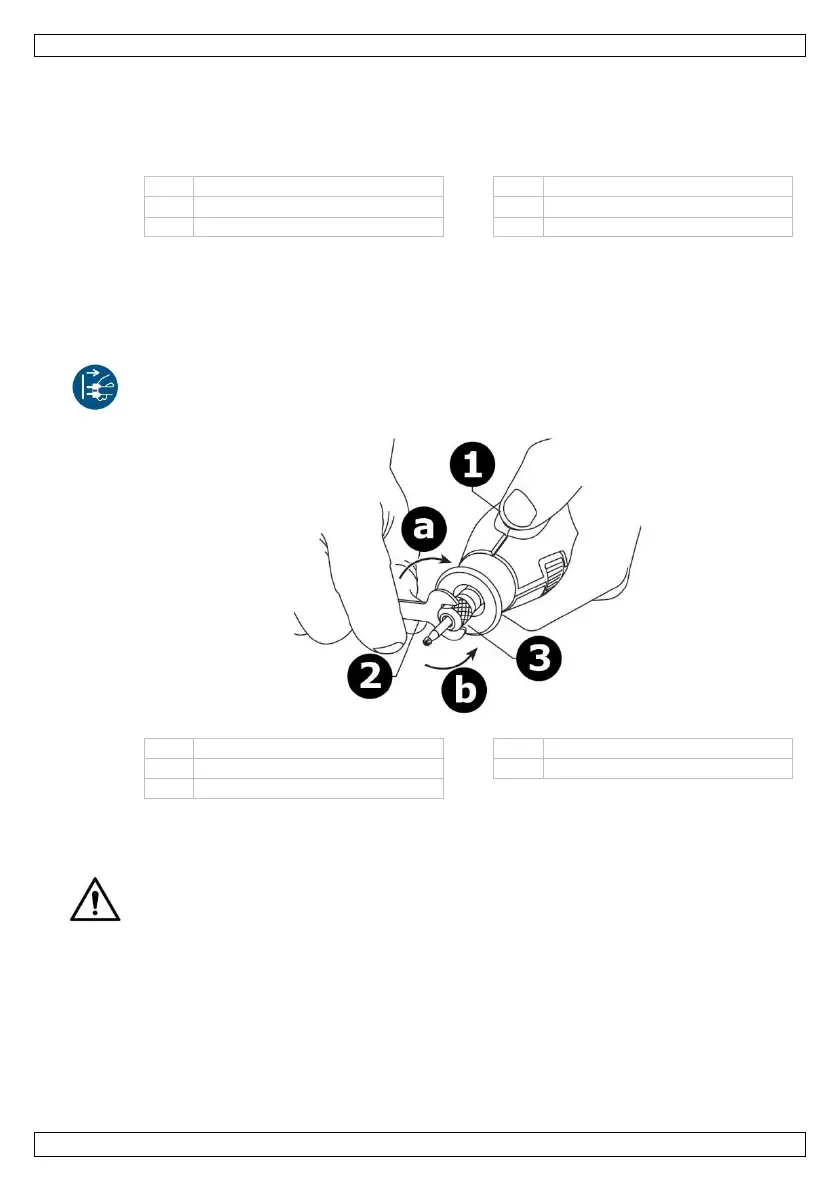 3. Zmienić akcesoria, wkładając nowe jak najgłębiej w tuleję zaciskową, aby